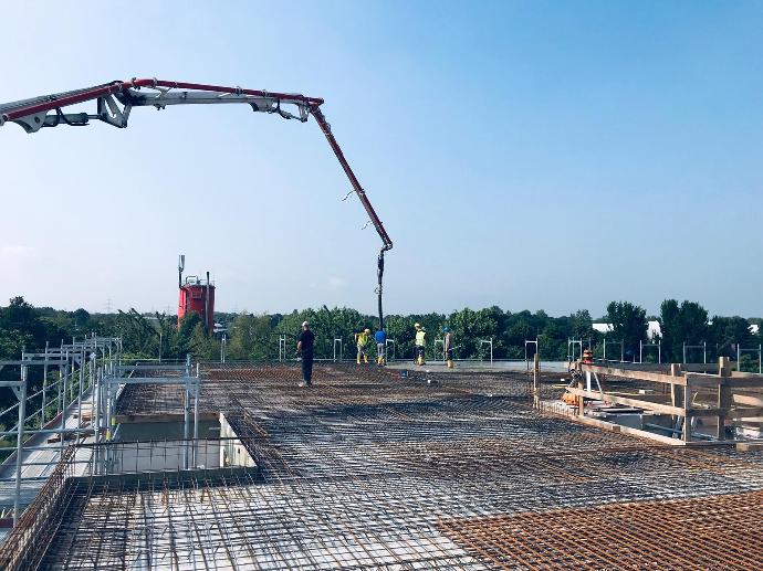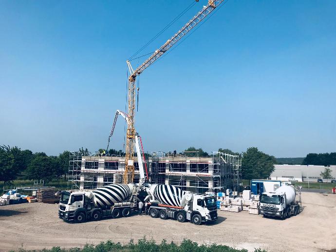Am 31. Juli 2019 im Gewerbegebiet Genend entsteht an der Alexander-Bell-Straße mit rund 1700 Quadratmetern ein neues Bürogebäude, in dem drei Unternehmen zukünftig kooperieren wollen. Die Arbeiten laufen weiterhin auf Hochtouren..