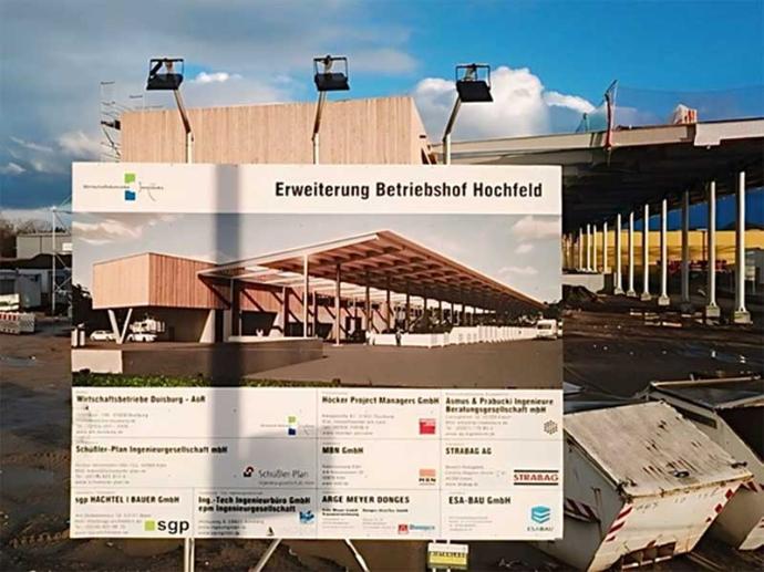 ESA BAU errichtet schlüsselfertig im Auftrag der Wirtschaftsbetriebe Duisburg den Neubau eines Verwaltungsgebäudes inklusive weitläufiger überdachter Containerstellplätze. Der Neubau erweitert somit den Standort der Wirtschaftsbetriebe in Duisburg-Hochfeld und dient Privatpersonen als Recyclinghof.